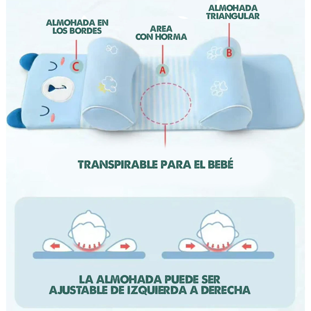 Y evitar el síndrome de cabeza plana. Su diseño ergonómico distribuye la presión de manera uniforme, asegurando comodidad y seguridad durante el sueño.