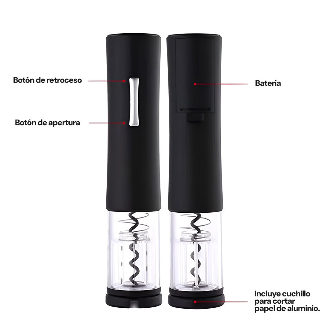 Este saca corchos eléctrico garantiza un descorche perfecto cada vez, sin esfuerzo y sin molestias.