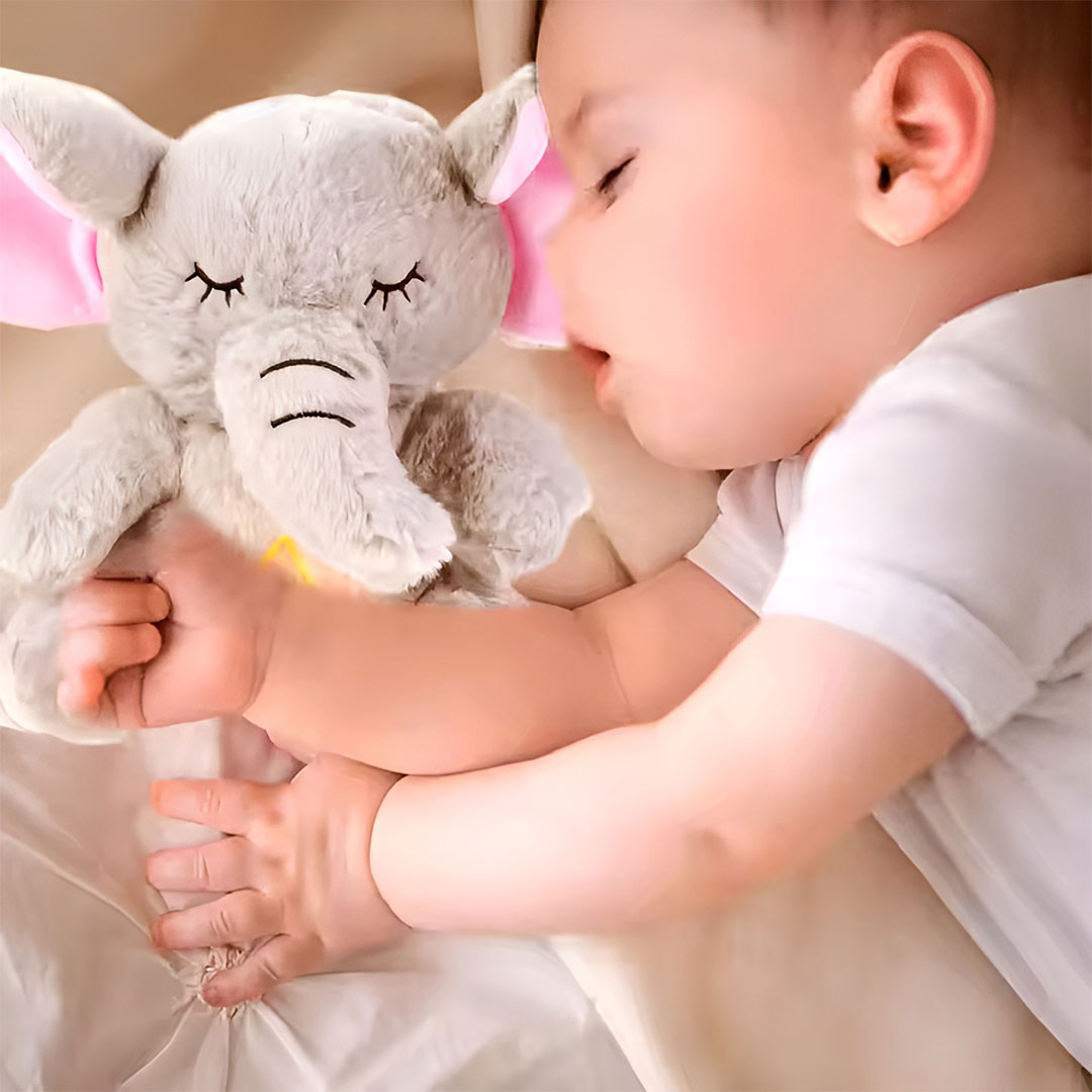 Elefante Relax® crea un ambiente acogedor con sonidos suaves y un movimiento que simula respiración, ideal para aliviar la ansiedad o fomentar el sueño en todas las edades