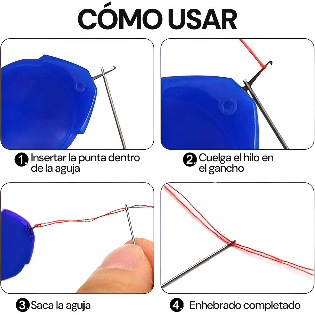 Perfecto para personas con problemas de visión o principiantes en costura, este enhebrador garantiza resultados rápidos y eficientes