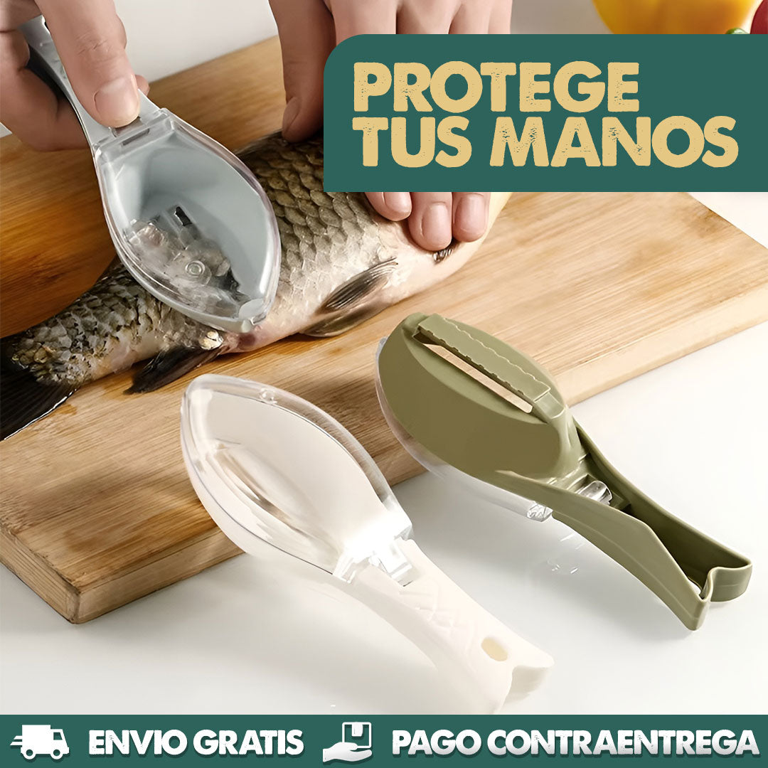 Nuestro pelador de pescado lo hace en segundos, sin ensuciar y sin riesgo de cortes. Su diseño con tapa recolectora mantiene todo limpio, y su mango ergonómico lo hace fácil de usar.