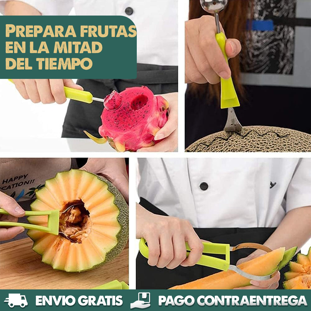 Este juego de herramientas 4 en 1 te permite cortar, esculpir y sacar bolitas de tus frutas favoritas en segundos