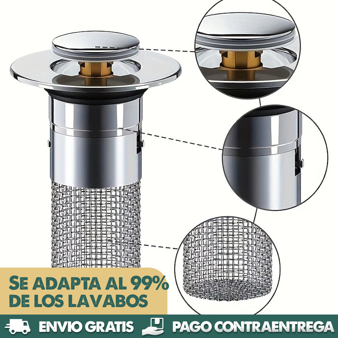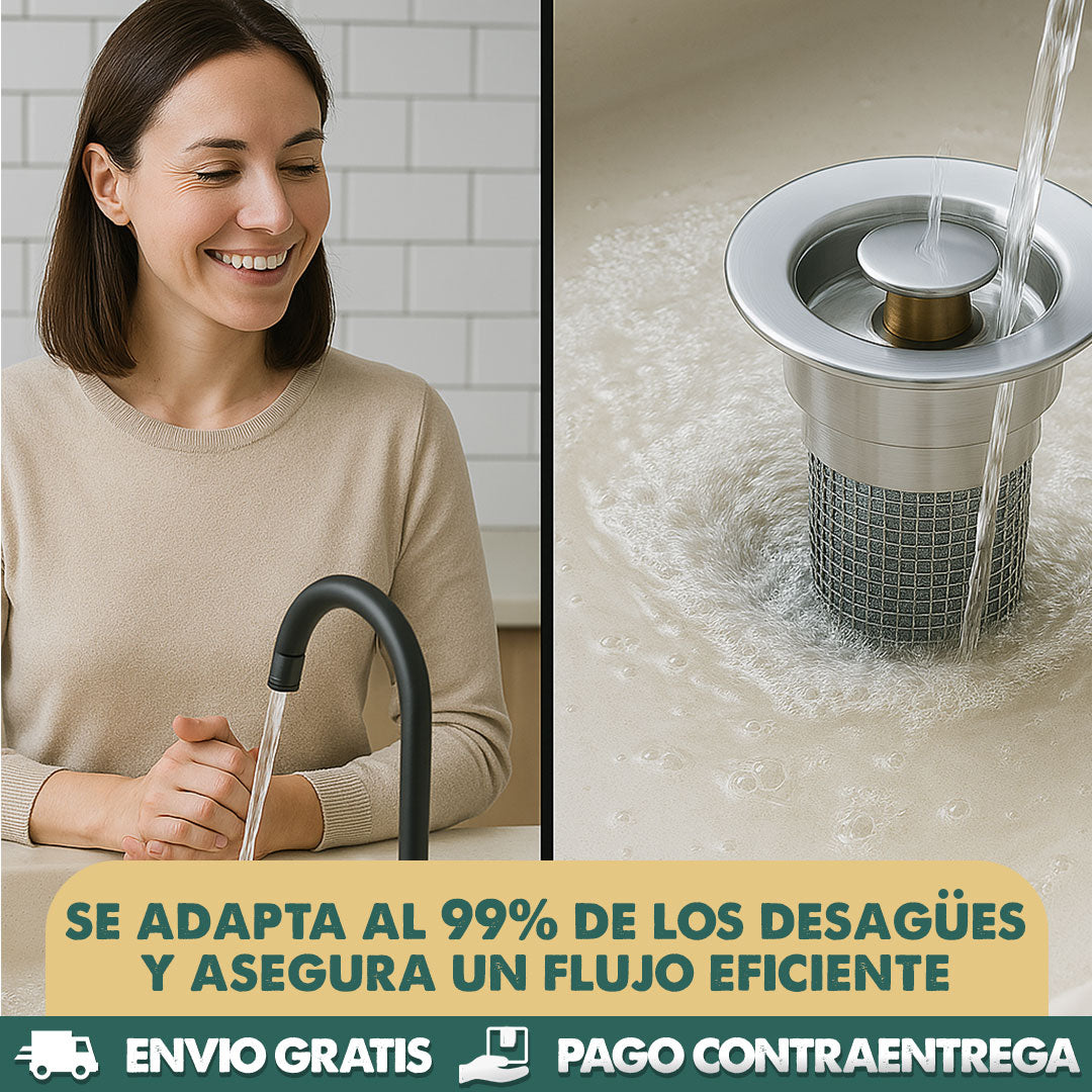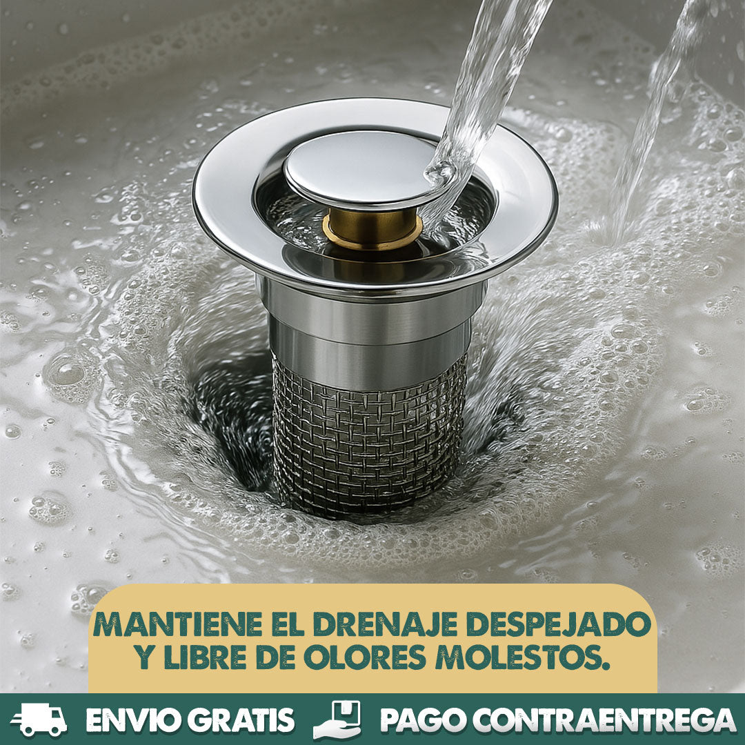 ✅ Mecanismo: Tapón emergente con cesta filtrante