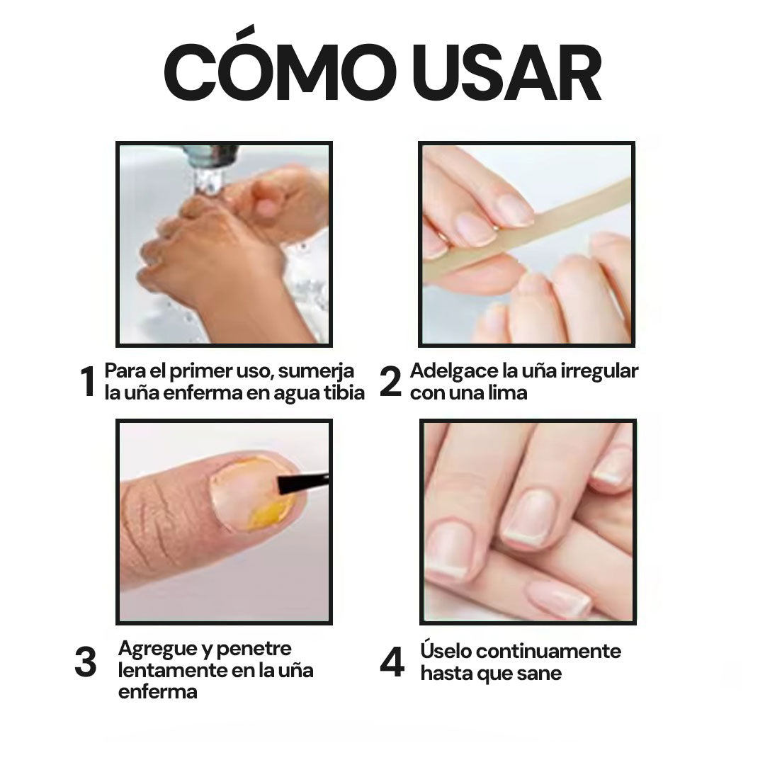 Modo de uso: Aplicar 2 veces al día sobre la uña y la piel circundante.