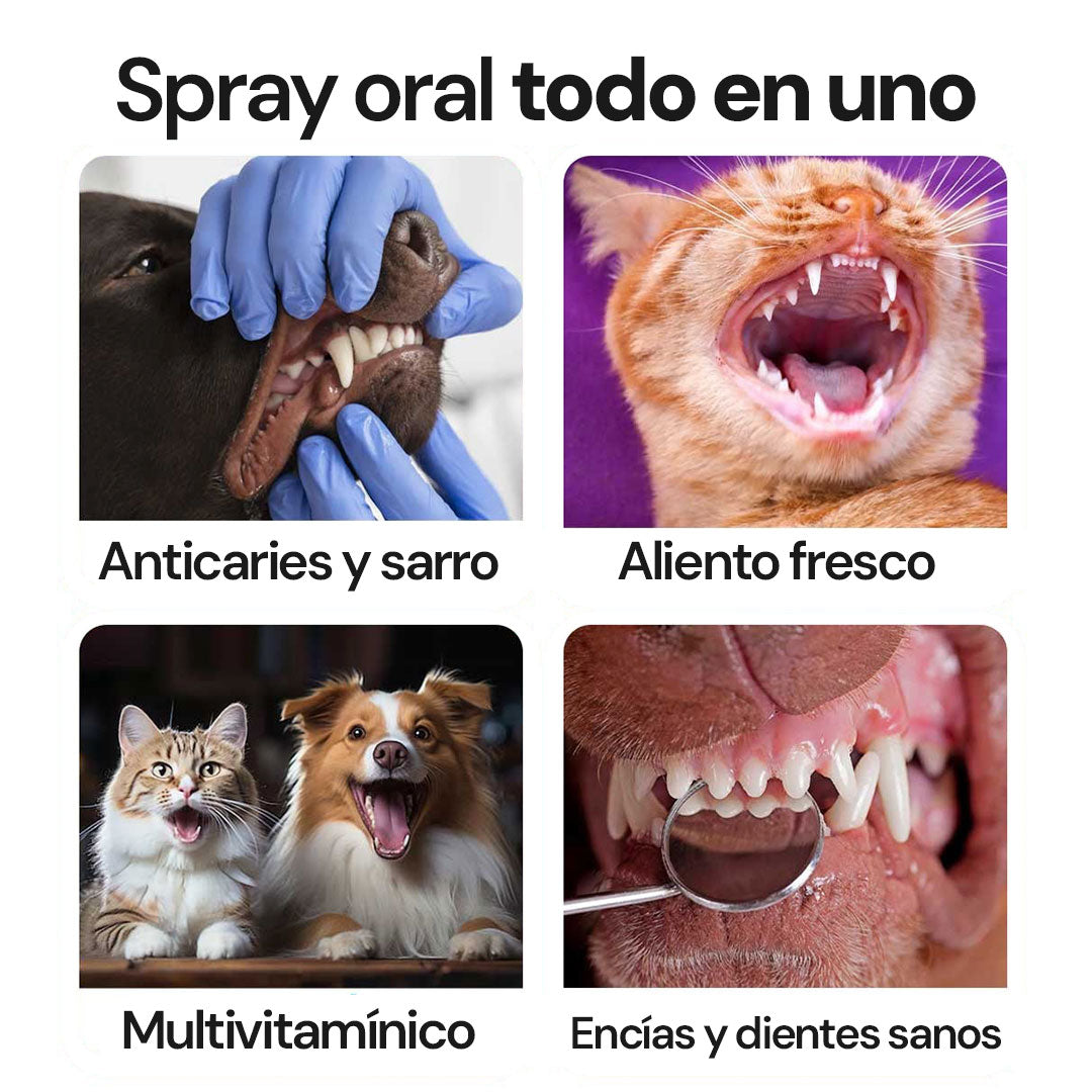 Mantén dientes y encías saludables sin complicaciones. Spray práctico para mascotas felices