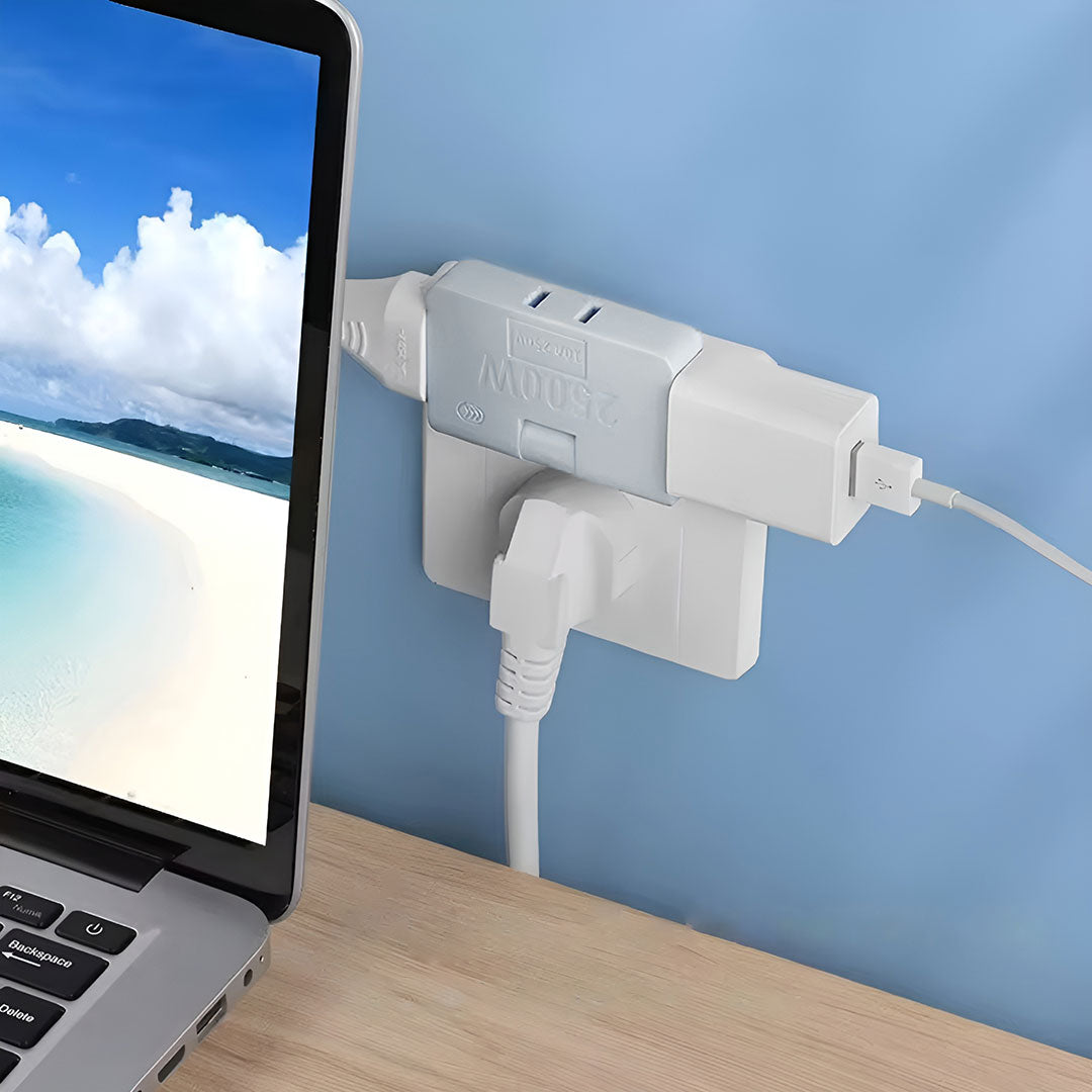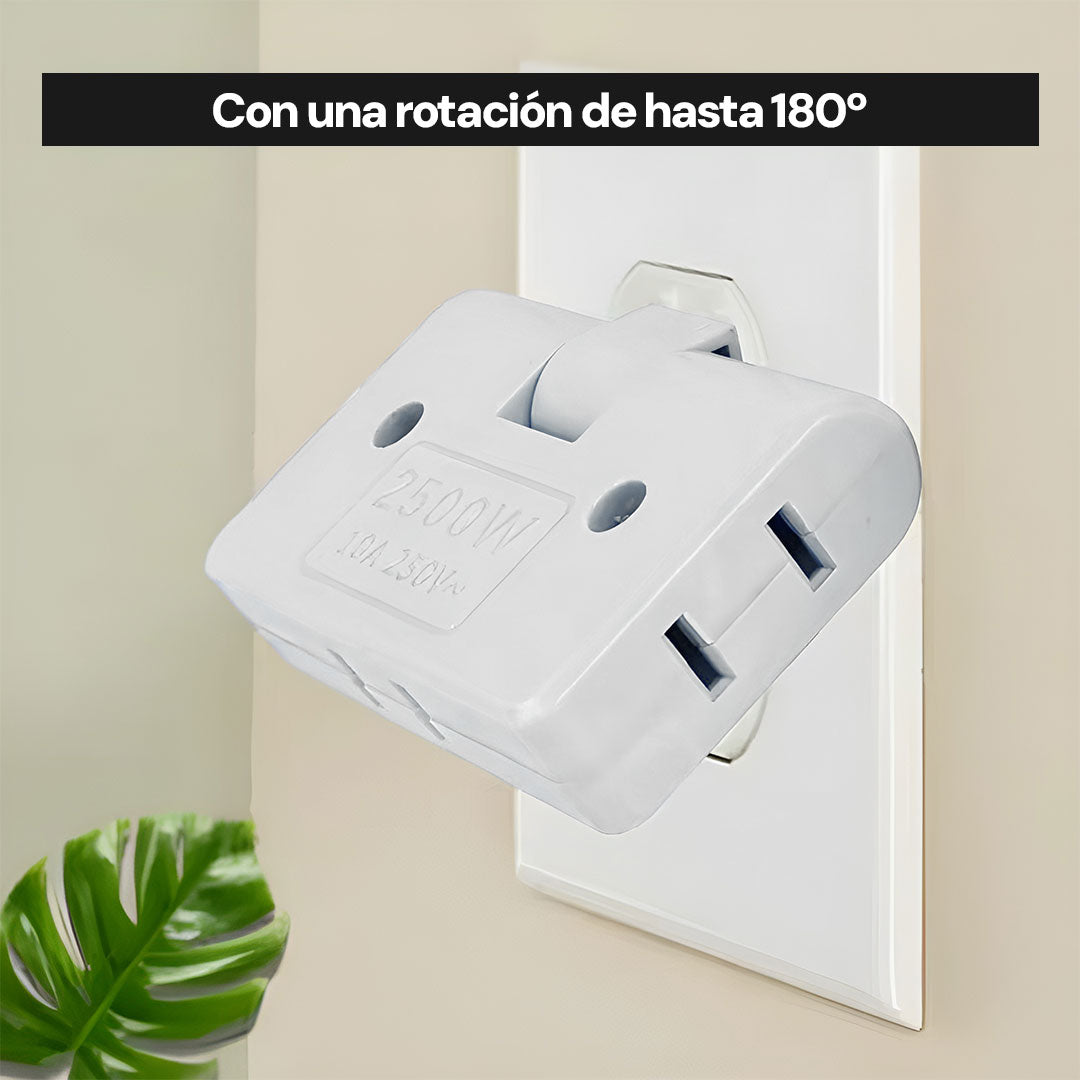 Su diseño compacto y giratorio te permite conectarlo en cualquier espacio sin obstruir otras tomas. Perfecto para hogares, oficinas y cualquier lugar donde necesites más conexiones