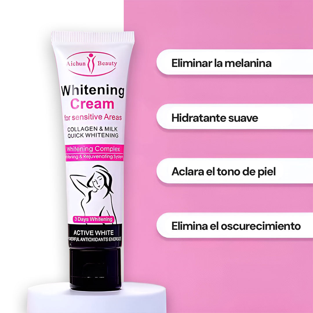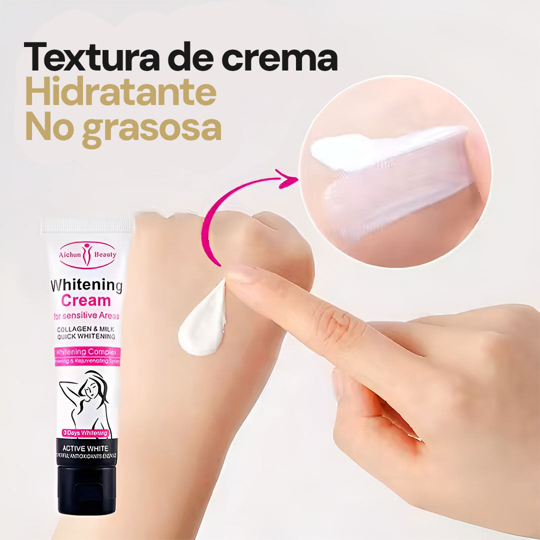 Esta crema blanqueadora es la solución perfecta. Con ingredientes como colágeno y leche, aclara, nutre y suaviza tu piel sin causar irritaciones. ¡Ideal para todas las pieles!