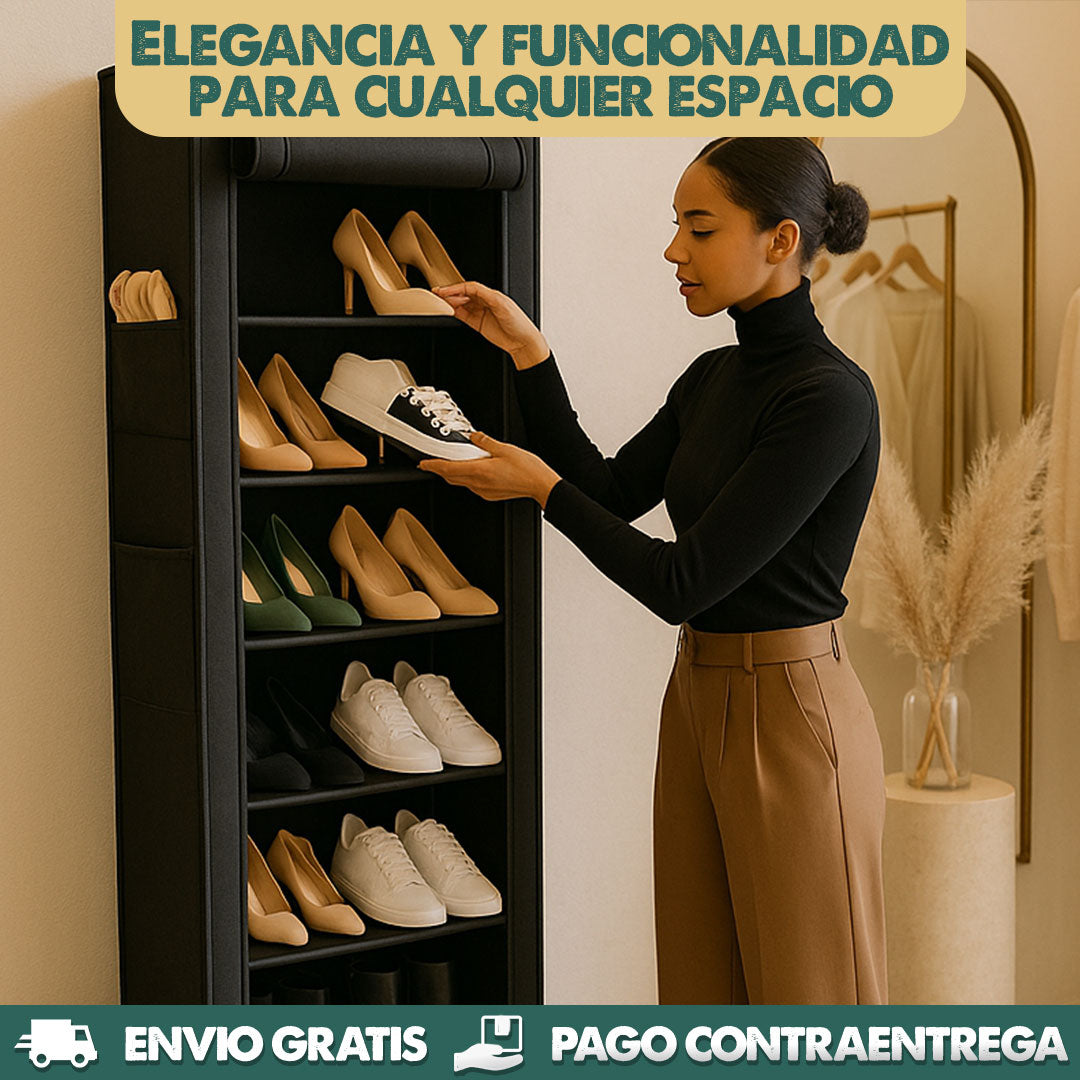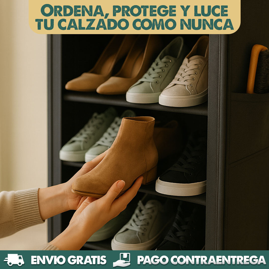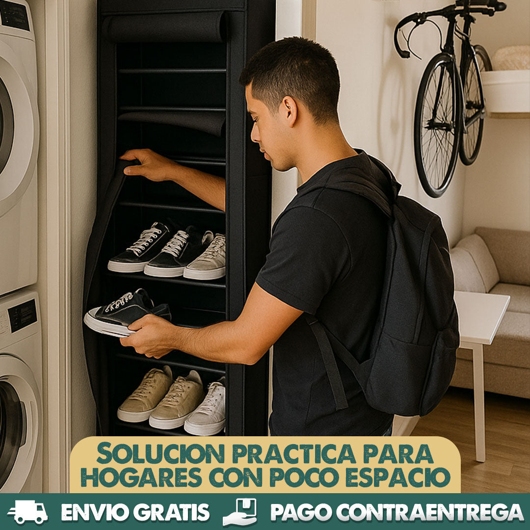 Diseñado para adaptarse a botas, tacones y zapatillas, este organizador aprovecha el espacio vertical para que cada par tenga su lugar 📏