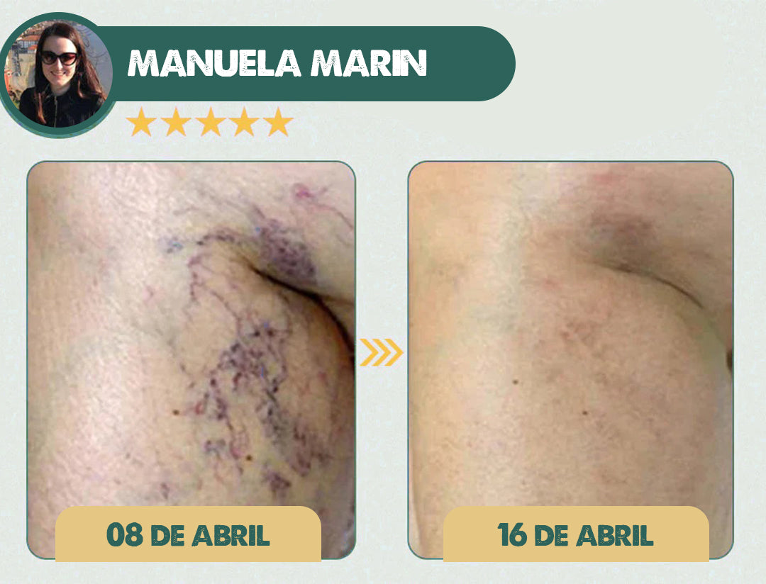 Su color es cercano a mi tono de piel, así que no se ve raro cuando la uso. ¡Desde el primer día mis piernas ya se sentían más ligeras! Para el día diez, las venas empezaron a desvanecerse. Mis piernas volvieron a estar suaves y, incluso después de estar muchas horas de pie, ya no me siento hinchado/a ni incómodo/a.