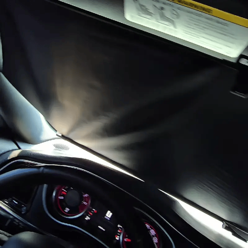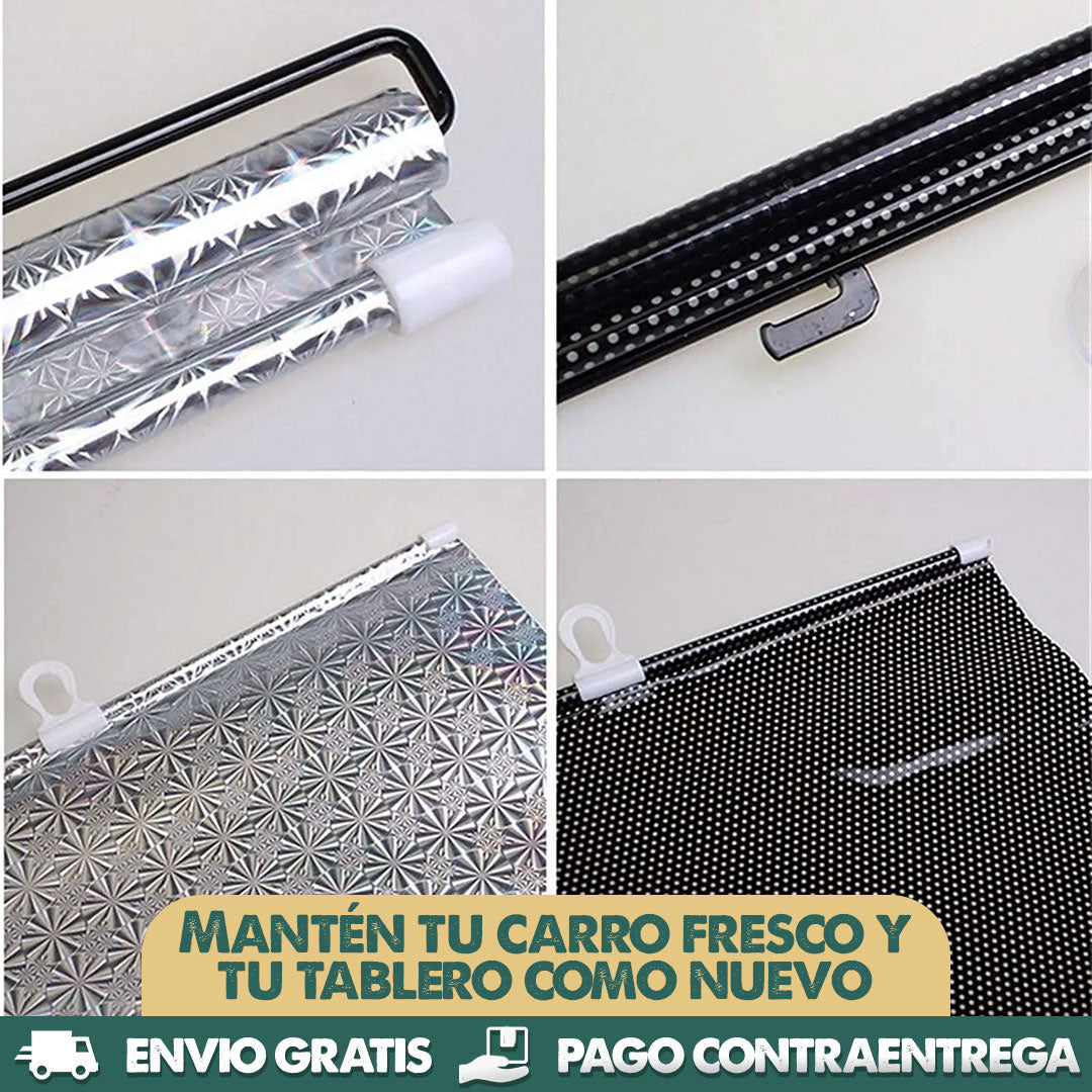 Usa este parasol portátil, fácil de plegar y guardar. Su tecnología reflectiva mantiene la temperatura interna más baja y evita daños costosos