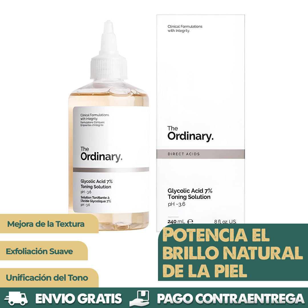 - Ingredientes clave: Ácido glicólico 7%, extracto de aloe vera, ginseng