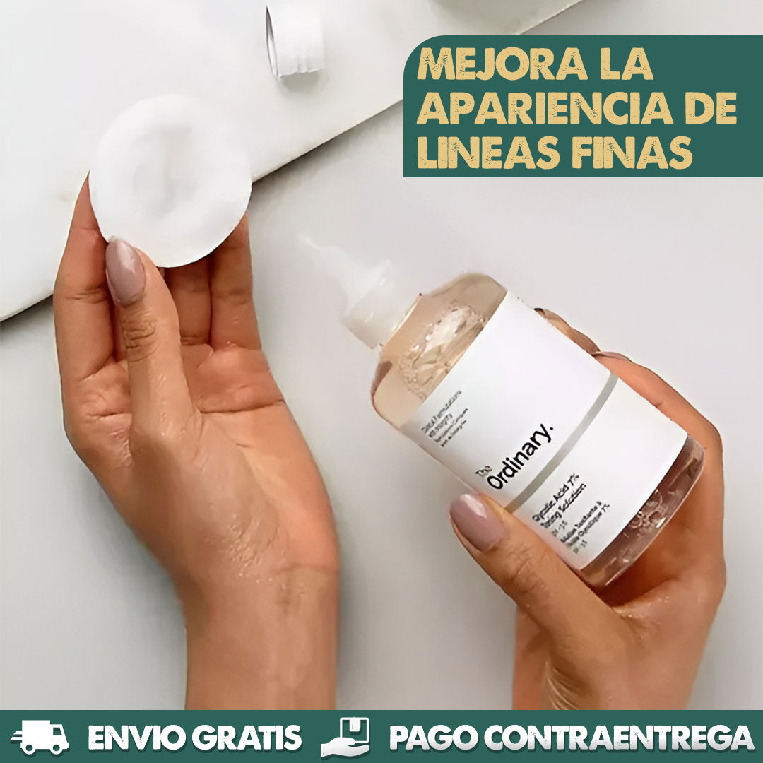 Nuestro tónico de Ácido Glicólico al 7% exfolia suavemente la piel, mejorando su luminosidad y claridad. Ideal para quienes buscan una piel más radiante y uniforme